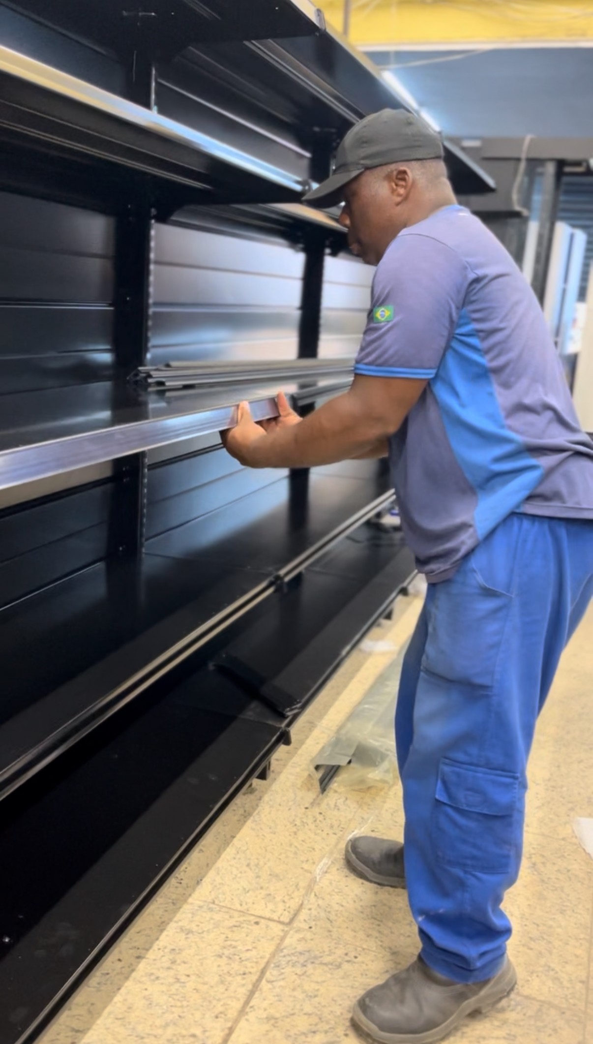 Gôndolas, balcões e expositores para materiais de construção.